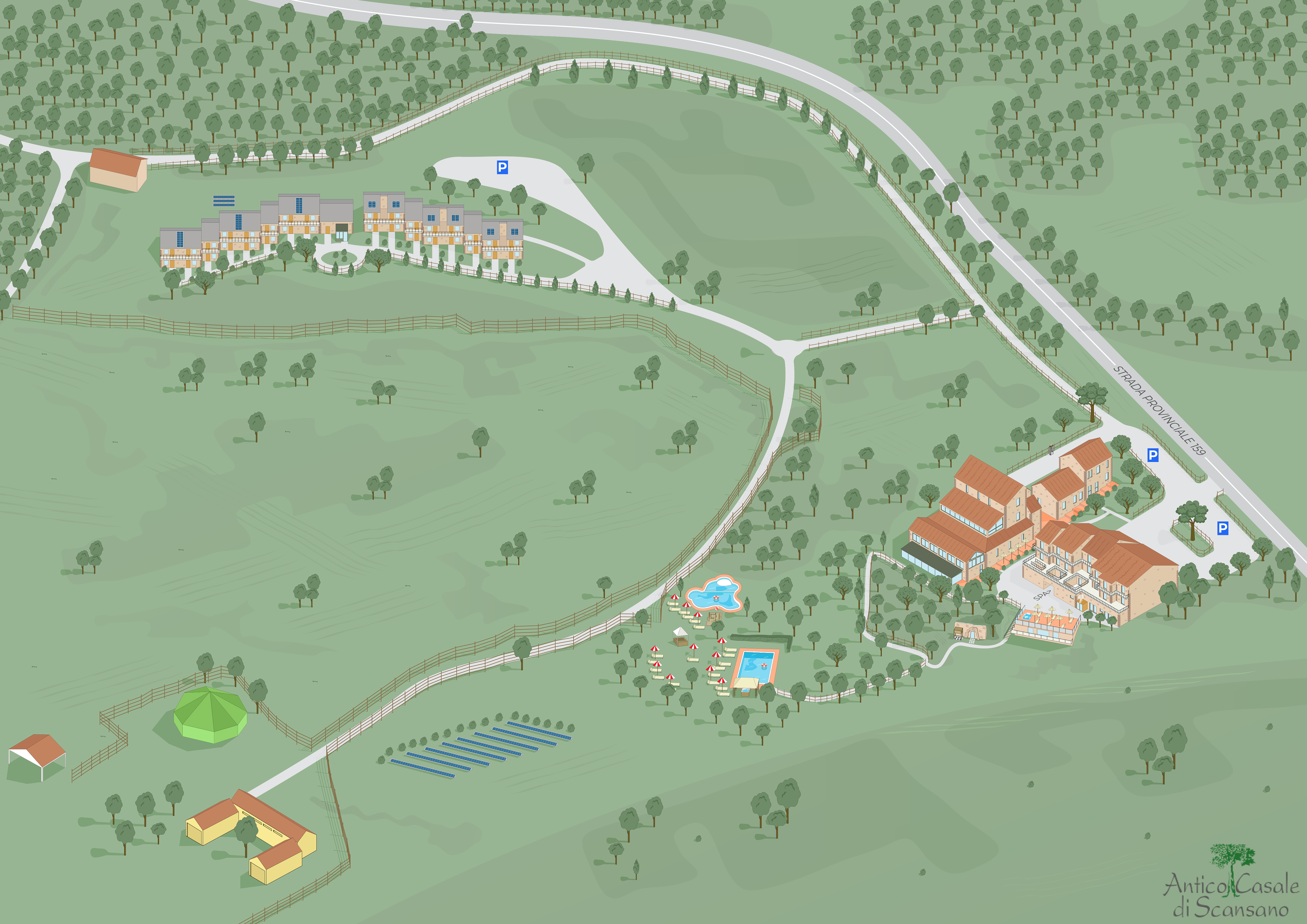 This isometric map for "Antico Casale" was a challenging project that required a high level of attention to detail. The goal of the map was to provide an accurate representation of the guest house and its surroundings, located in the renowned Toscana region of Italy. The placement and perspective of the buildings presented a unique challenge, but through the use of advanced mapping techniques including isometric mapping, the final design exceeded expectations and was highly accurate. The map serves as a valuable tool for the guest house to showcase its location and facilities to potential guests and visitors to the Toscana region.