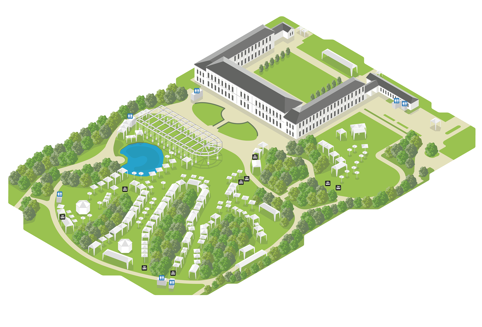 This very demanding isometric map for the festival in Berlin turned out phenomenally to the satisfaction of both myself and the client. The challenge was to set up all the tents in their original proportions and in precisely determined positions.