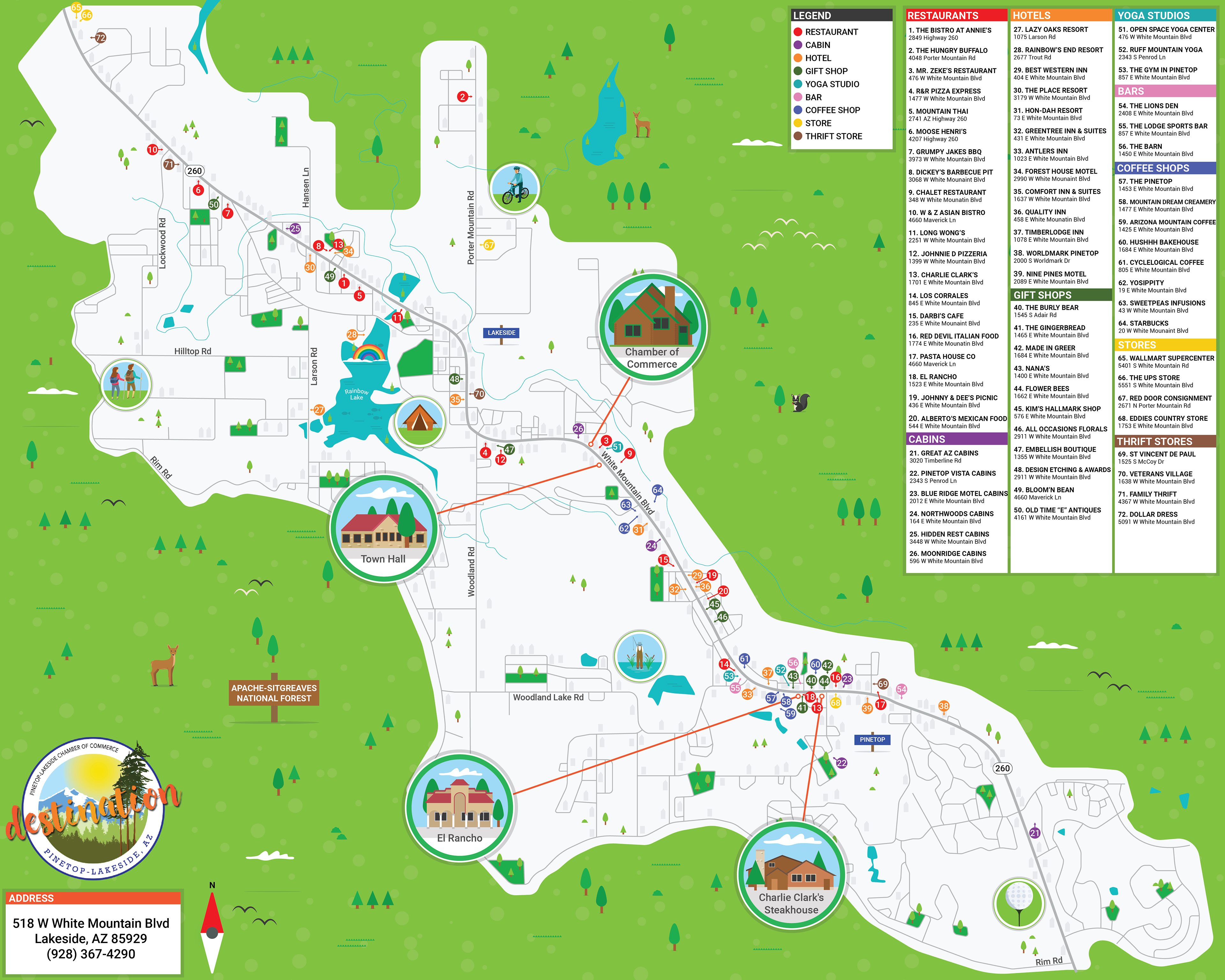 This map was created for a client from a small town in Arizona. Their goal was to showcase the town's landmarks and highlight local businesses, using this map as a way to promote the town's offerings.