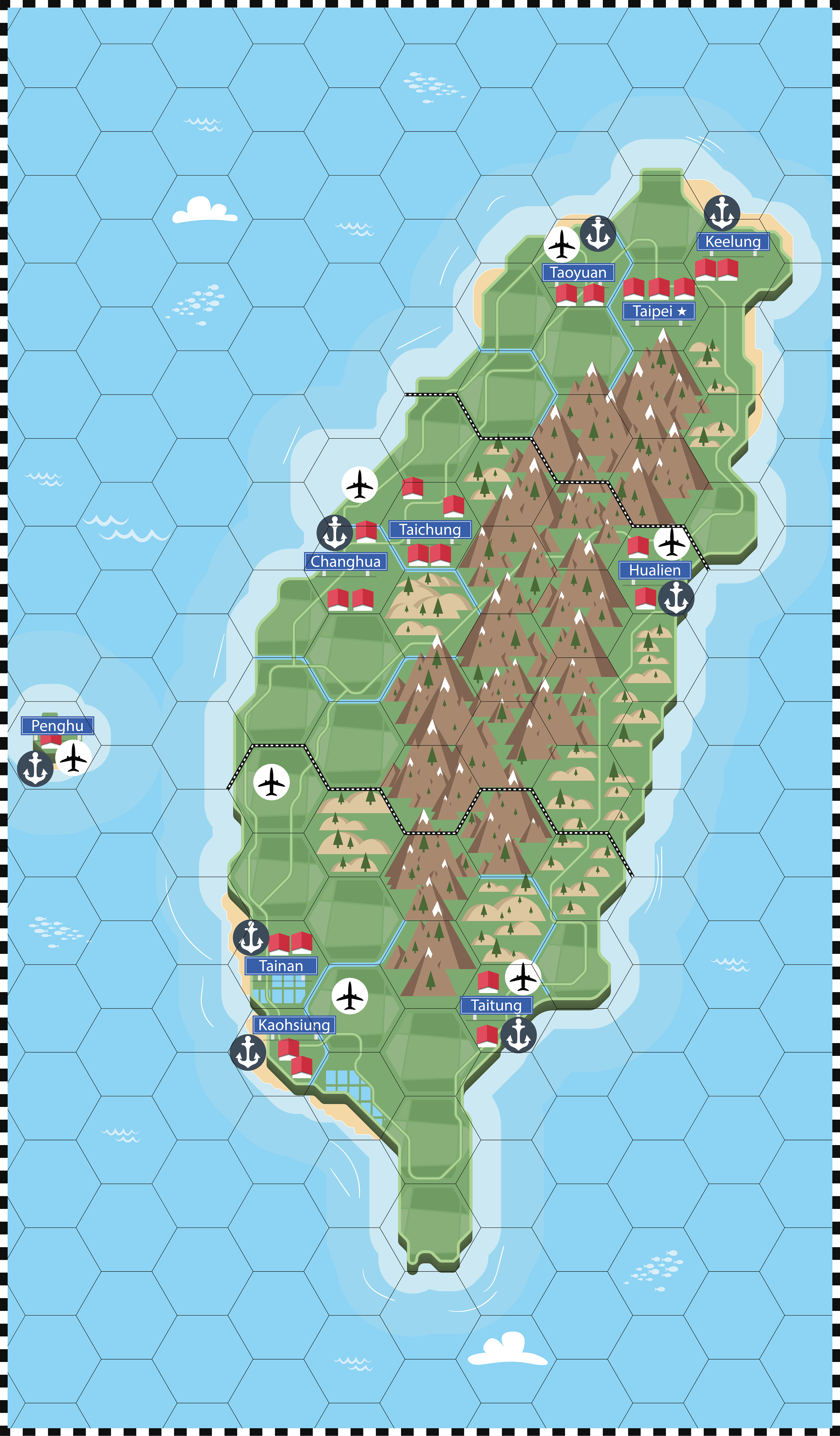 A client has commissioned me to create a board game themed around Taiwan and the influence of prominent artworks located there. Hexagonal tiles and a map in my style seem like the perfect fit for this project.