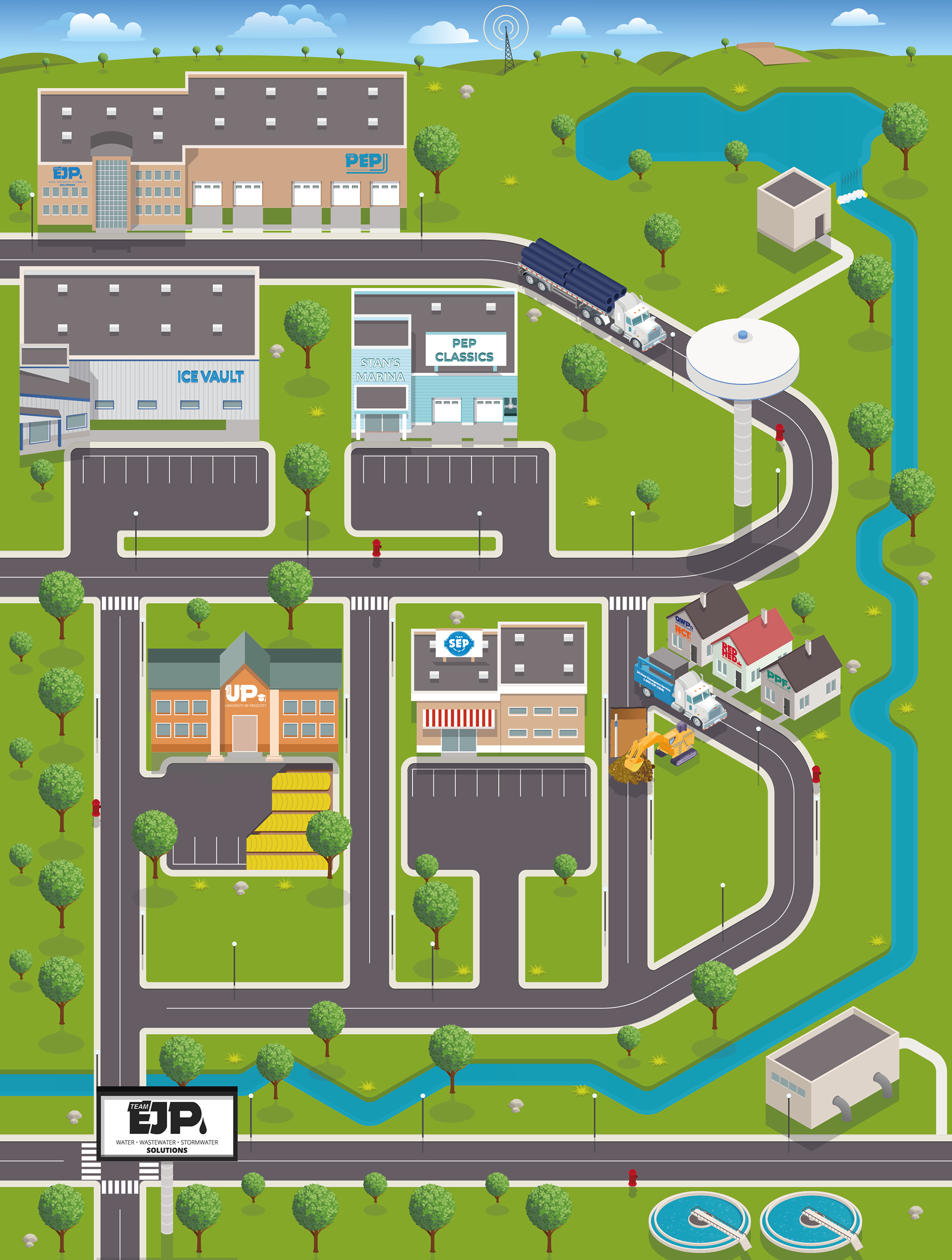 This isometric map (yes, it's an isometric but from a different angle) was created for a client who wanted to present their business in an interesting way.